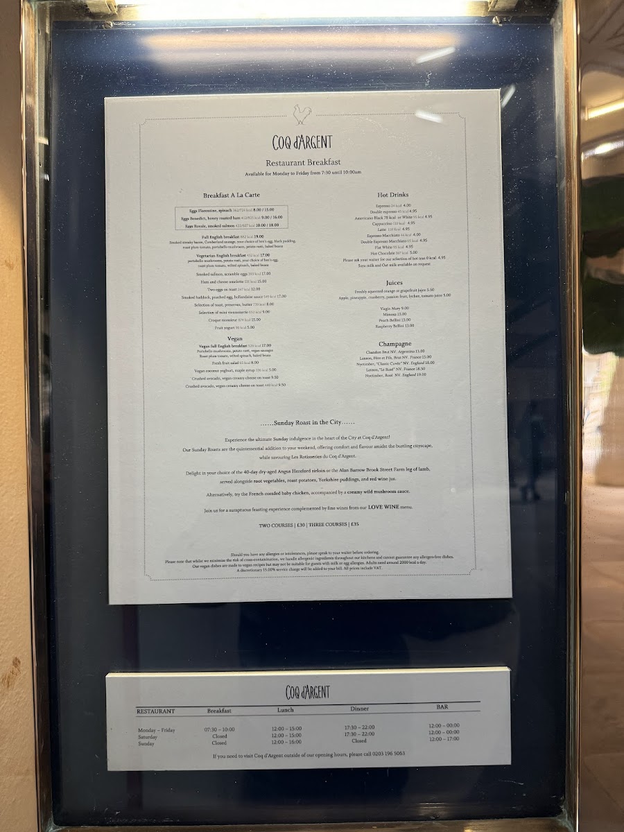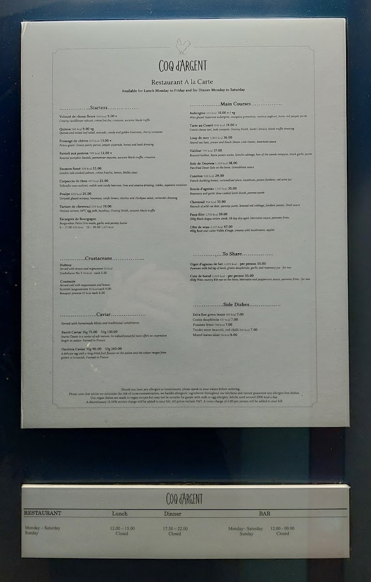 Choose from a selection of our favourite Coq d’Argent classics, available for lunch every Saturday.